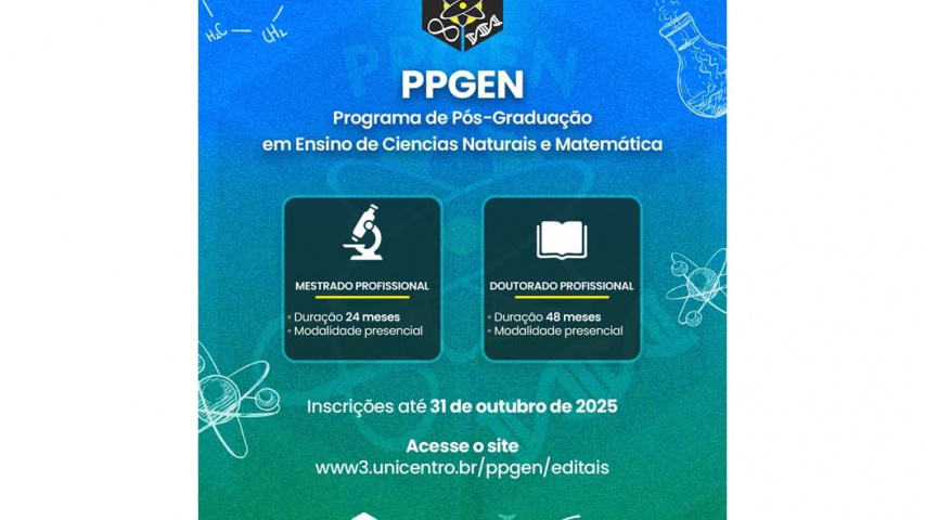 - O prazo segue até o dia 31 de outubro, com oferta de vagas para o ano letivo de 2026 tanto para o Mestrado quanto para o Doutorado Profissional.