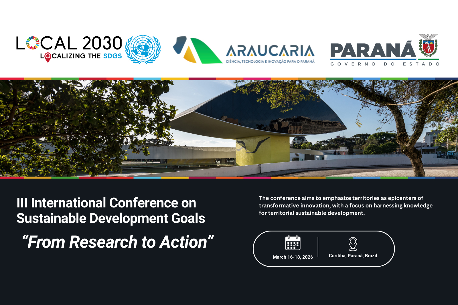 Curitiba será palco, entre os dias 16 e 18 de março de 2026, do III Fórum Internacional dos Objetivos de Desenvolvimento Sustentável (ODS) – “Da Pesquisa à Ação”, um dos principais eventos internacionais voltados à articulação entre ciência, políticas públicas e desenvolvimento territorial sustentável. A iniciativa reunirá lideranças acadêmicas, gestores públicos, pesquisadores, jovens e representantes de organizações internacionais para discutir soluções baseadas em evidências para os desafios globais da Agenda 2030 - plano global da Organização das Nações Unidas (ONU) com 17 Objetivos de Desenvolvimento Sustentável (ODS) para erradicar a pobreza e proteger o planeta.