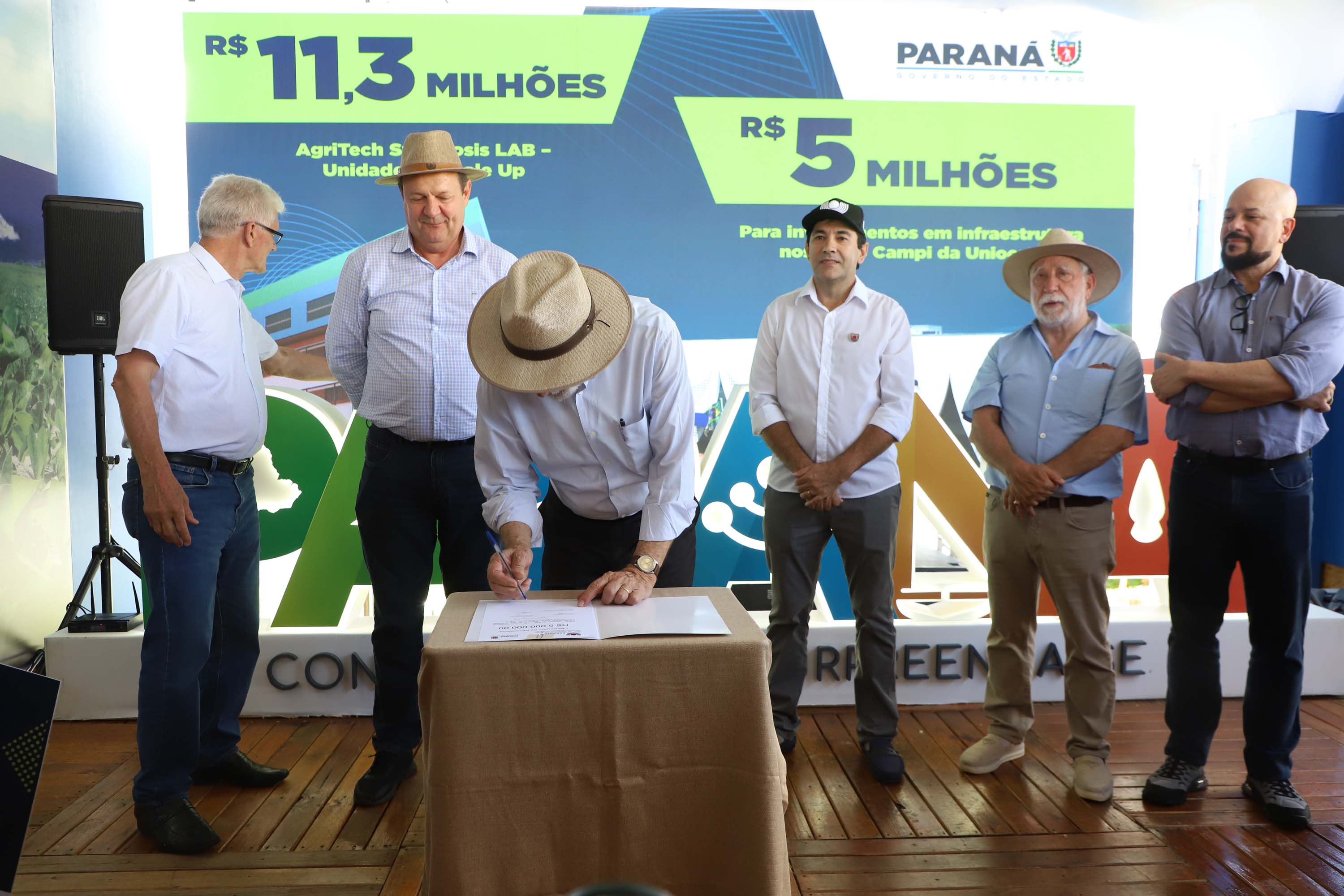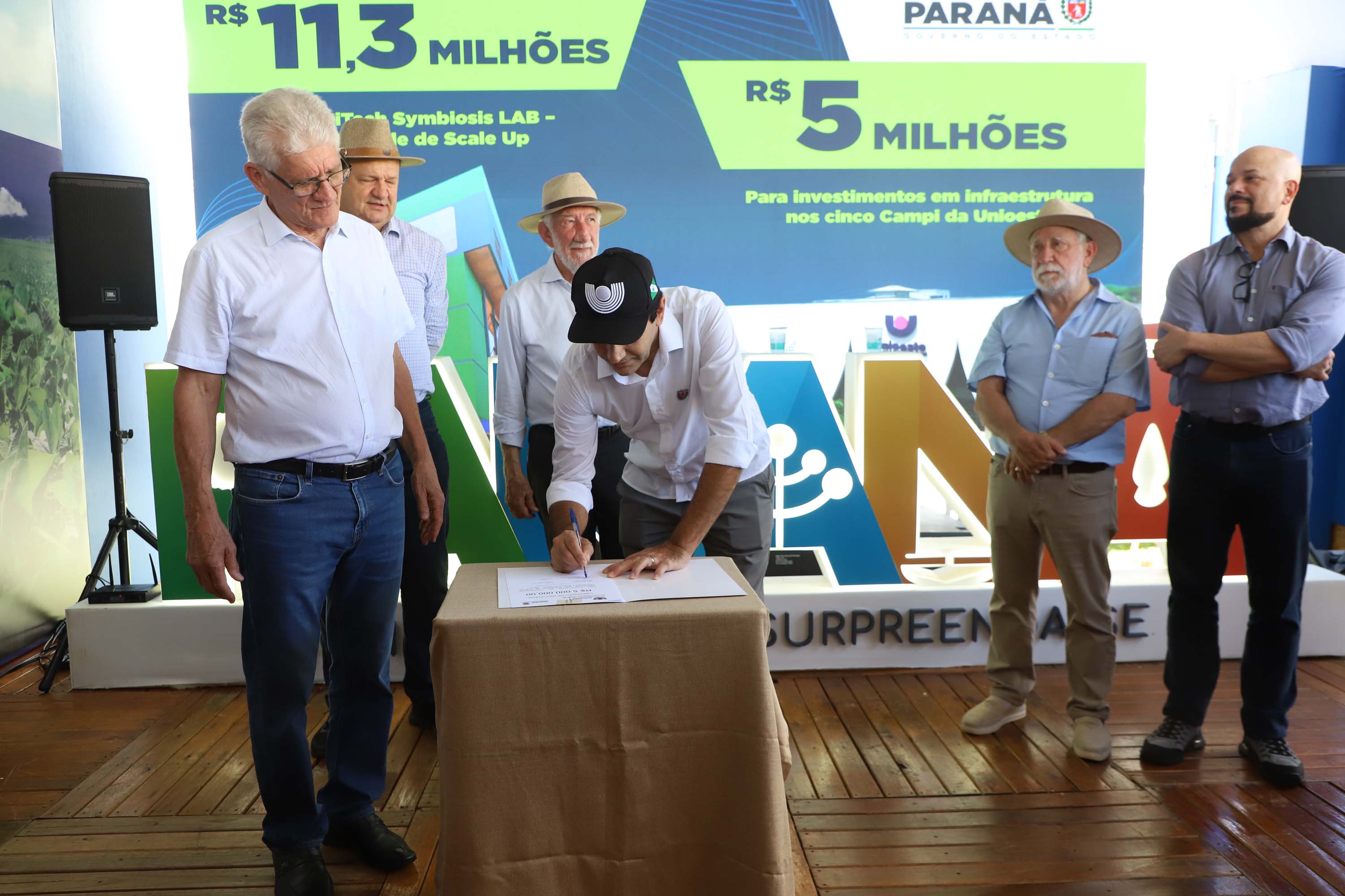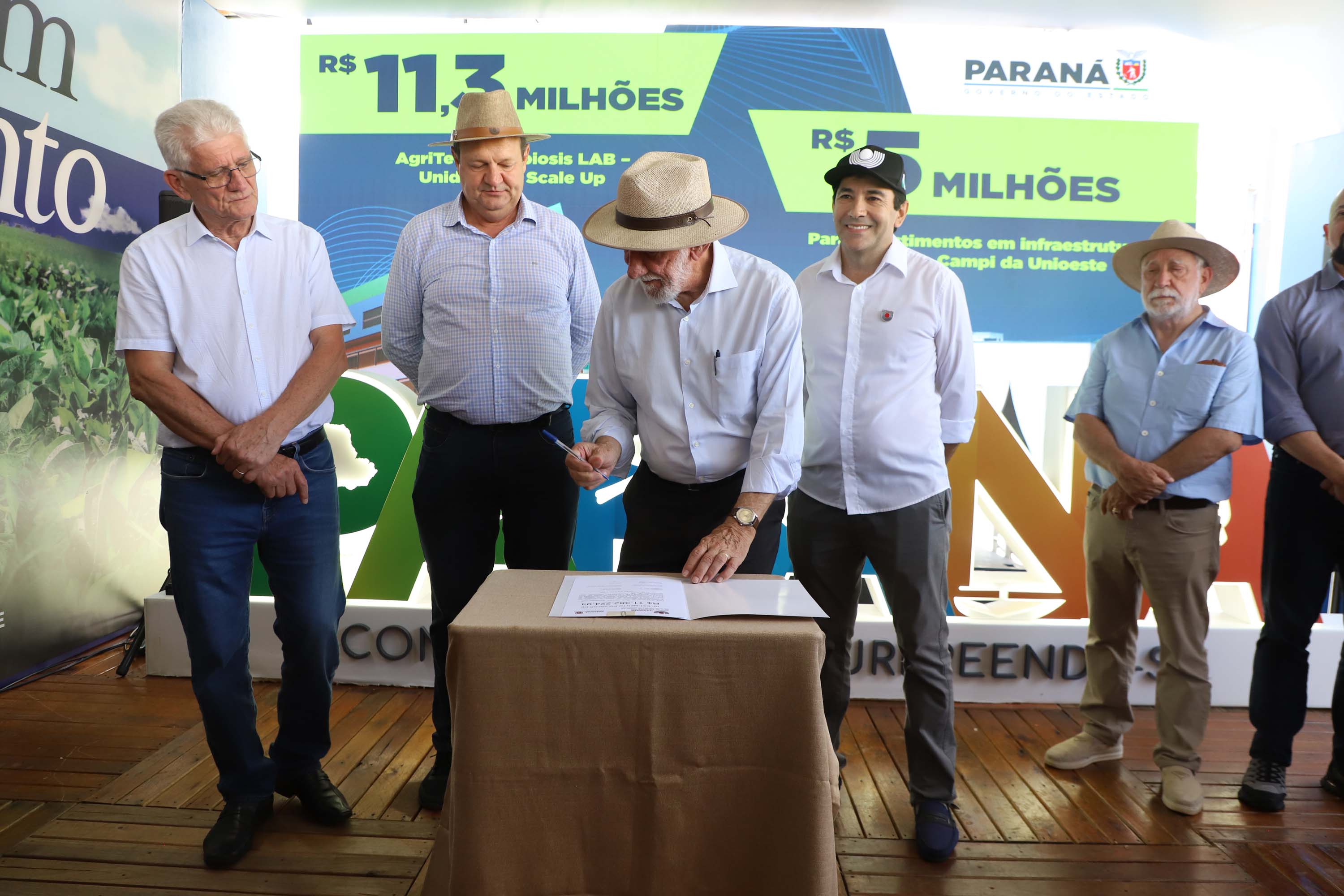 O governador em exercício Darci Piana anunciou nesta terça-feira (10) um investimento de R$ 16,3 milhões para fortalecer instrumentos de pesquisa e ciência da Universidade Estadual do Oeste do Paraná (Unioeste) para os próximos anos. A assinatura foi realizada no estande da isntituição estadual de ensino superior no Show Rural 2026, no Parque Tecnológico da Cooperativa Agroindustrial de Cascavel (Coopavel), em Cascavel, na região Oeste do Estado.