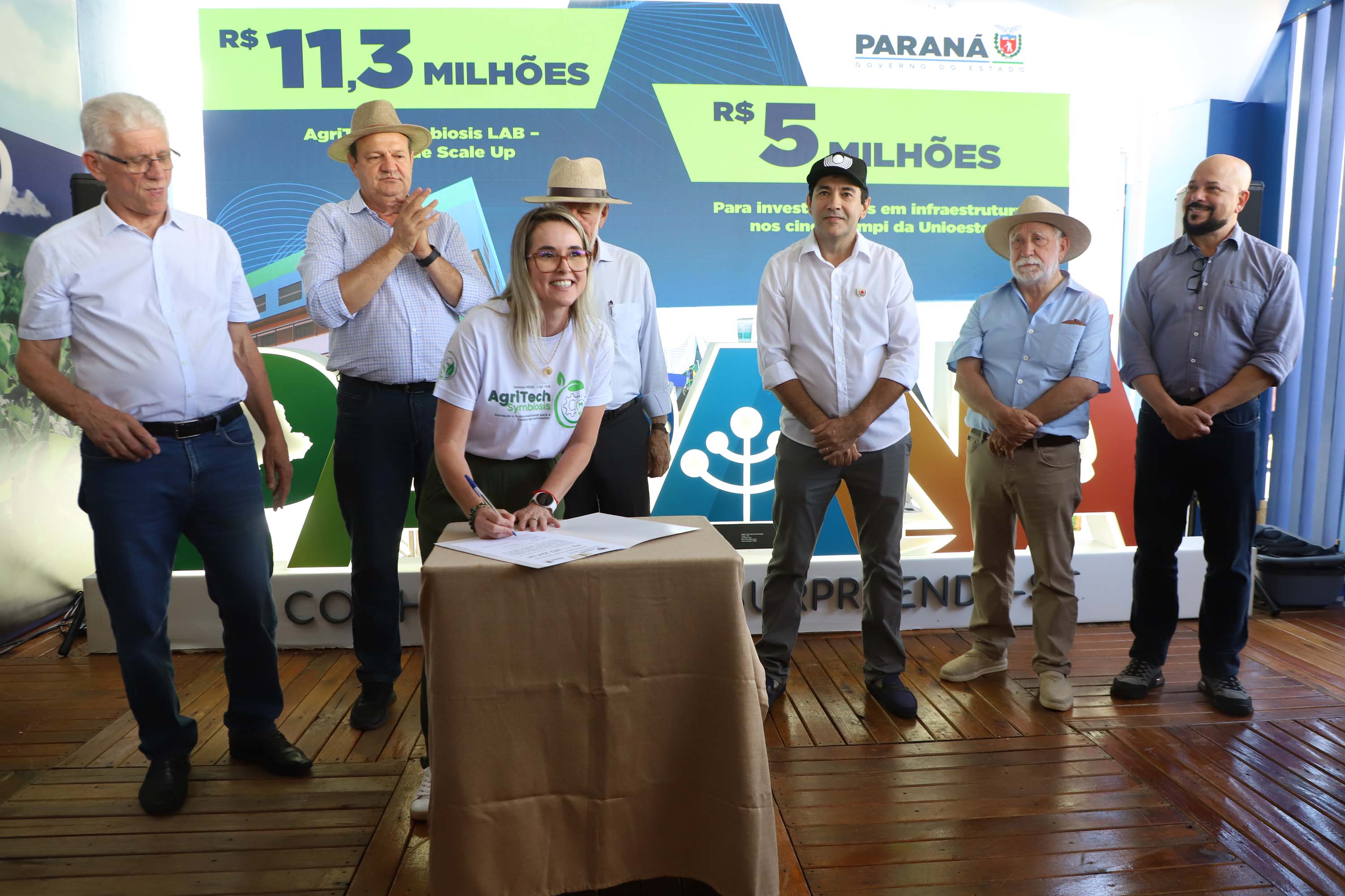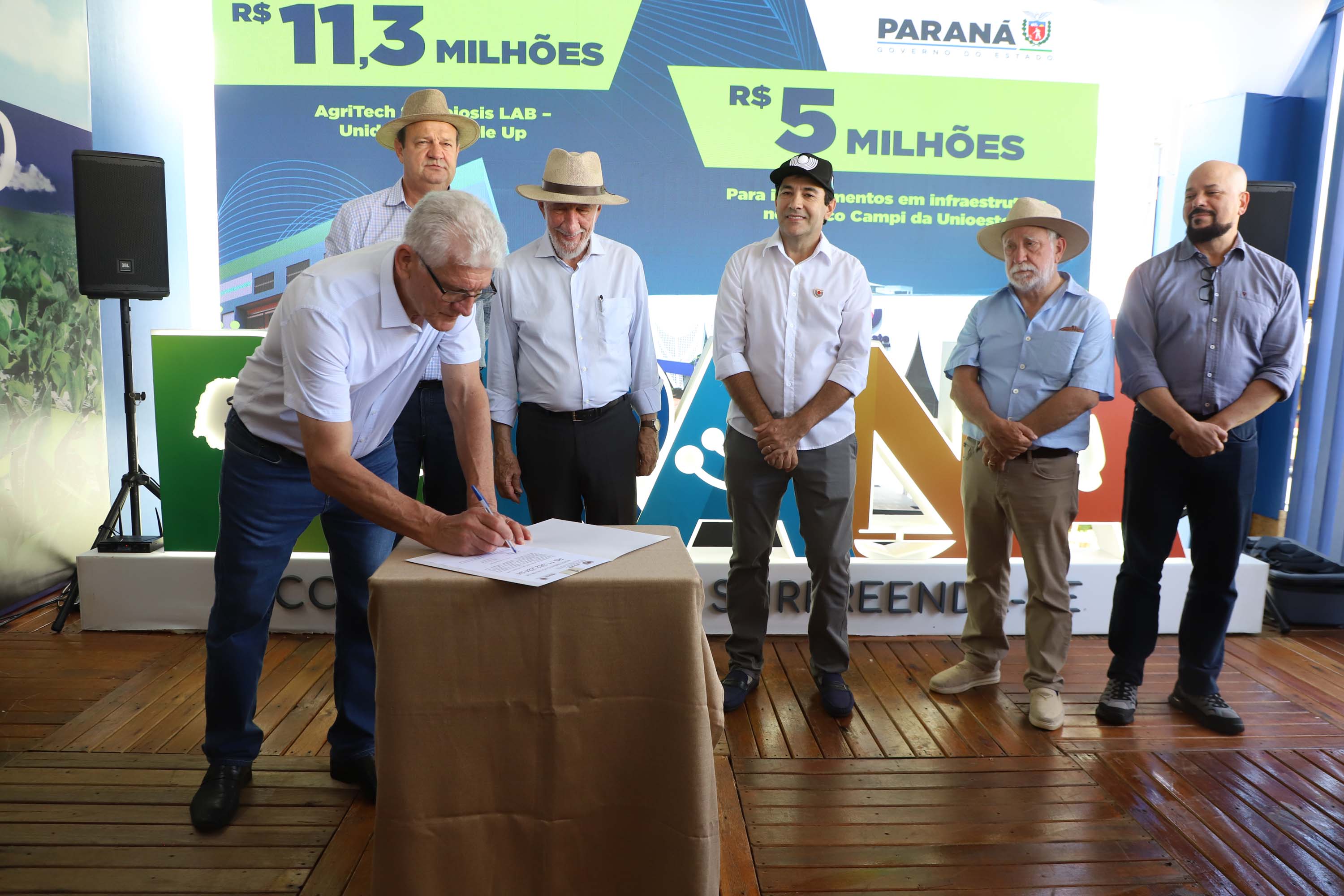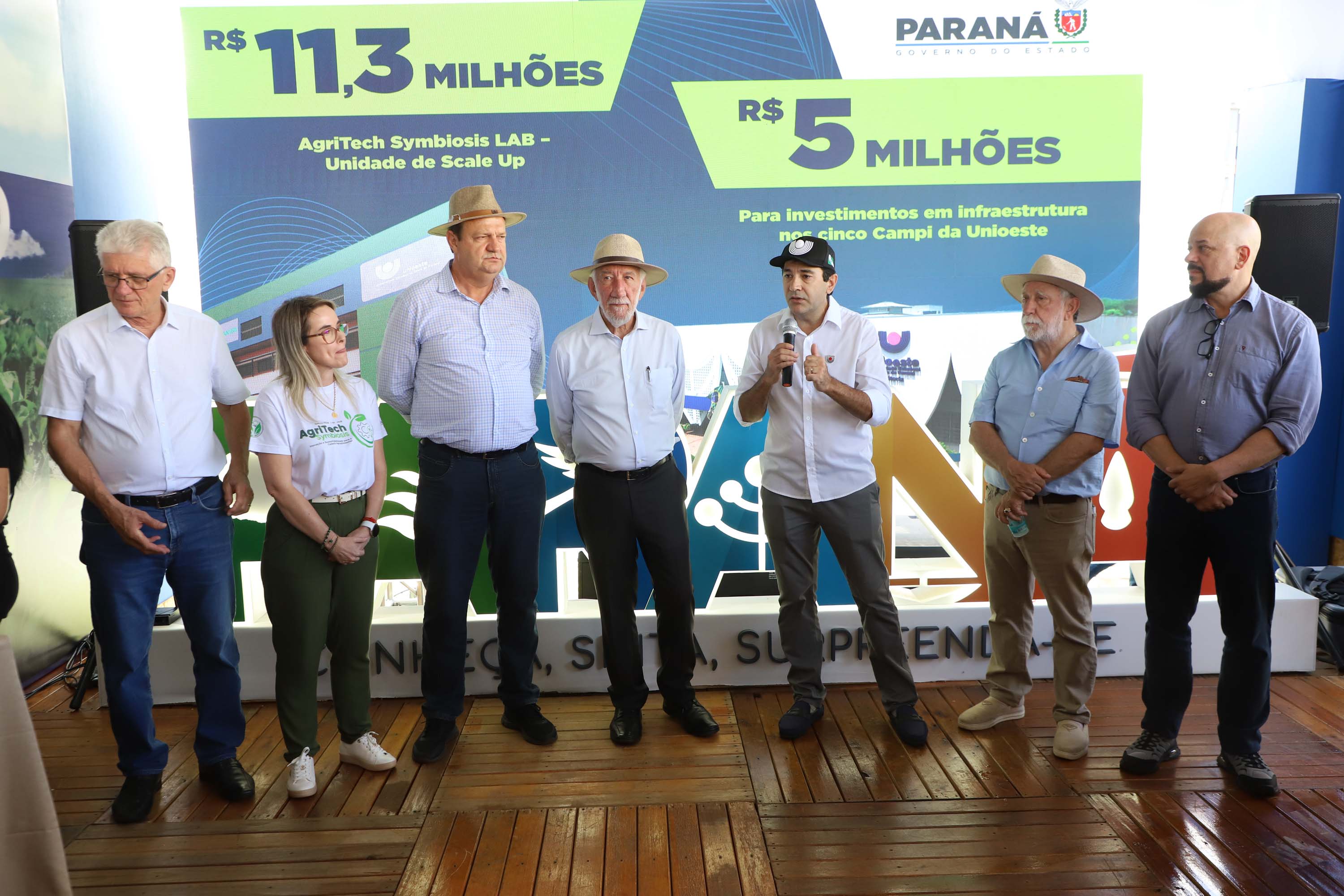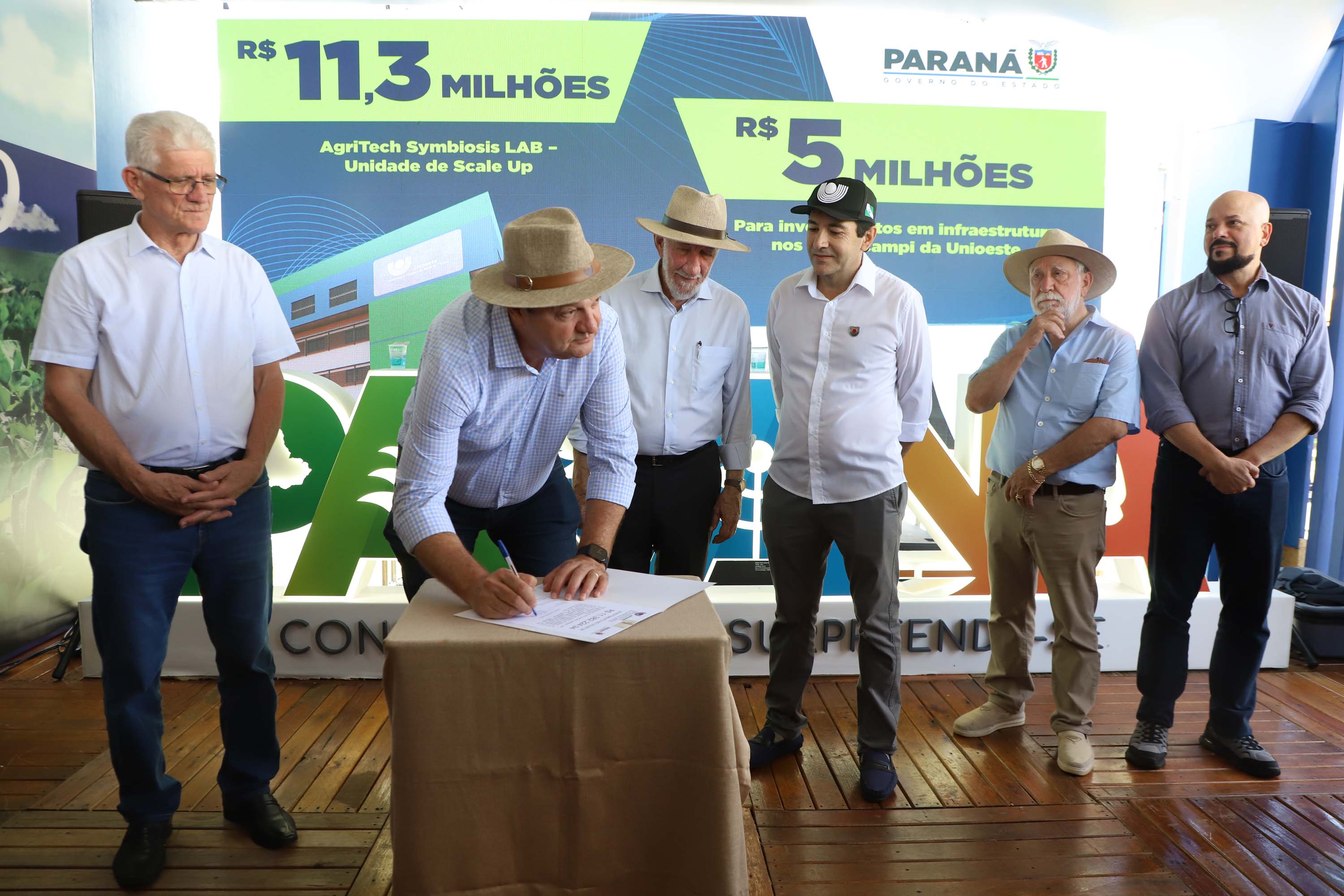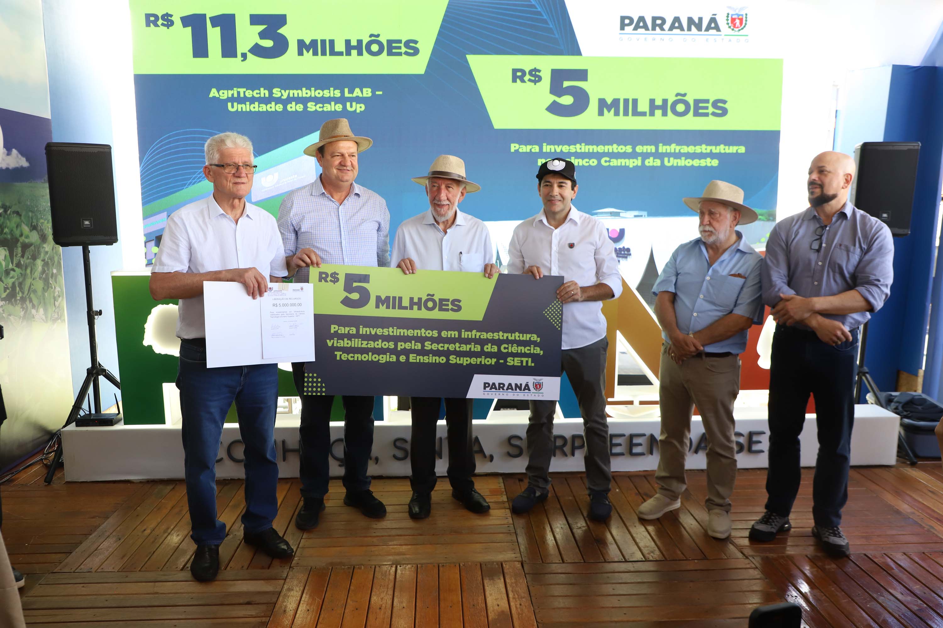 A cerimônia contou com a presença do secretário da Ciência, Tecnologia e Ensino Superior, Aldo Nelson Bona, do secretário da Fazenda, Norberto Ortigara, do reitor em exercício, Gilmar Ribeiro de Mello, e do diretor de Ciência, Tecnologia e Inovação da Fundação Araucária, Luiz Márcio Spinosa. Os anúncios envolvem melhorias nos cinco câmpus da Unioeste (Cascavel, Foz do Iguaçu, Francisco Beltrão, Marechal Cândido Rondon e Toledo) e na Reitoria.
