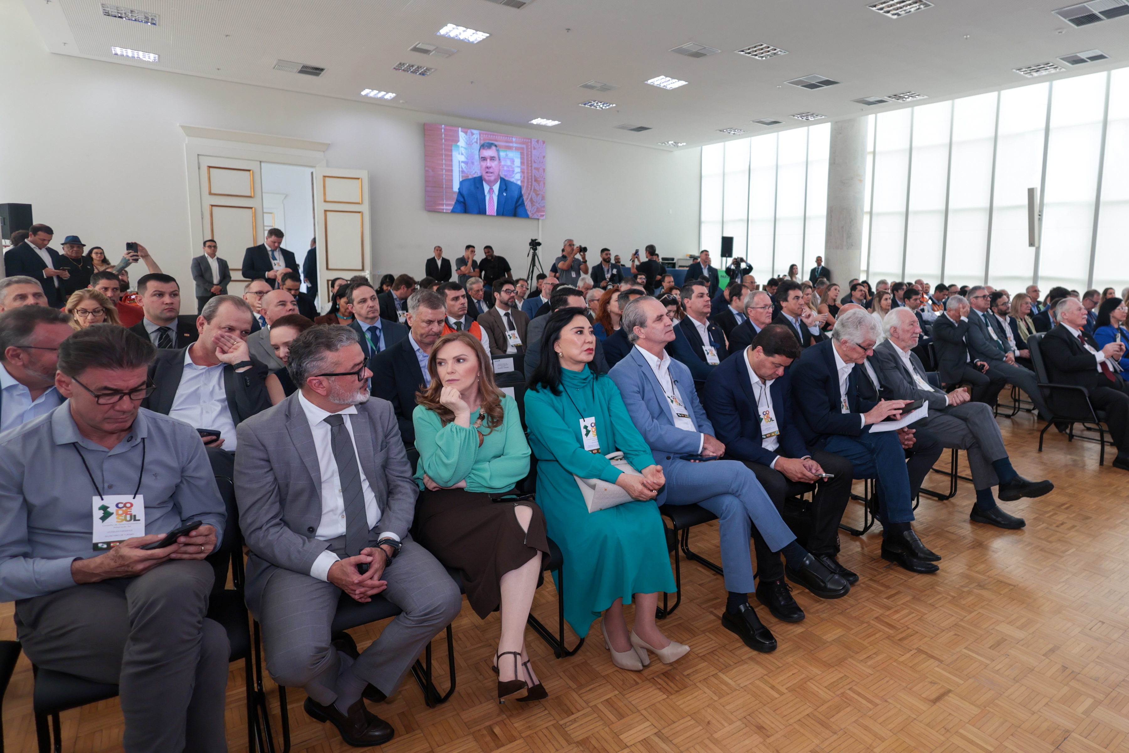 PRESENÇAS – Também participaram do evento a secretária de Meio Ambiente e Infraestrutura do Rio Grande do Sul, Marjorie Kaufmann; o vice-governador do Paraná, Darci Piana; a presidente do Tribunal de Justiça do Paraná, desembargadora Lidia Maejima; o diretor-presidente do Banco Regional de Desenvolvimento do Extremo Sul (BRDE), René Garcia Junior; o procurador-geral do Estado, Luciano Borges; o secretário executivo do Codesul, Jader Rieffe Julianelli Afonso; o secretário do Codesul pelo Paraná, Orlando Pessuti; a secretária do Codesul pelo Mato Grosso do Sul, Magda Correa; a secretária do Codesul por Santa Catarina, Vânia de Oliveira; a secretária do Codesul pelo Rio Grande do Sul, Micheli Petry; o presidente da Aliança Láctea Sul Brasileira, Rodrigo Rizzo; o presidente da Associação Brasileira das Empresas Distribuidoras de Gás Canalizado (Abegás), Marcelo Mendonça; os secretários de Estado do Paraná: Guto Silva (Cidades), Sandro Alex (Infraestrutura e Logística), Luizão Goulart (Administração); Norberto Ortigara (Fazenda); Hudson Teixeira (Segurança Pública); Ulisses Maia (Planejamento); Leandre Del Ponte (Mulher, Igualdade Racial e Pessoa Idosa); Leonaldo Paranhos (Turismo), Aldo Bona (Ciência, Tecnologia e Ensino Superior), Marcos Tordoro (chefe da Casa Militar); o diretor-presidente do DER/PR, Fernando Furiatti; o diretor-presidente da Ferroeste, André Gonçalves; o coordenador executivo da Defesa Civil do Paraná, coronel Ivan Fernandes; o presidente do Ipardes, Jorge Callado; a deputada estadual, Cloara Pinheiro; e demais autoridades.