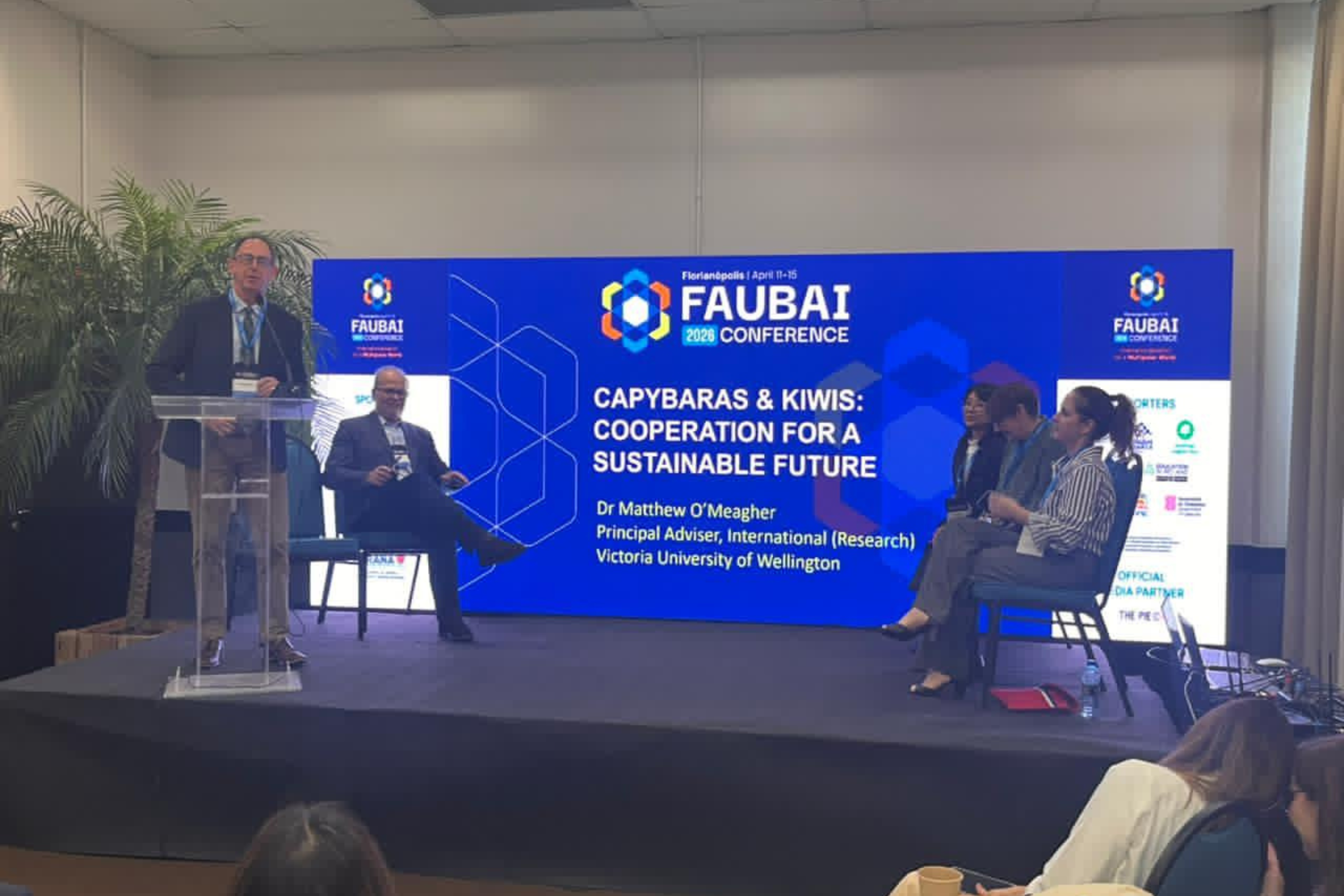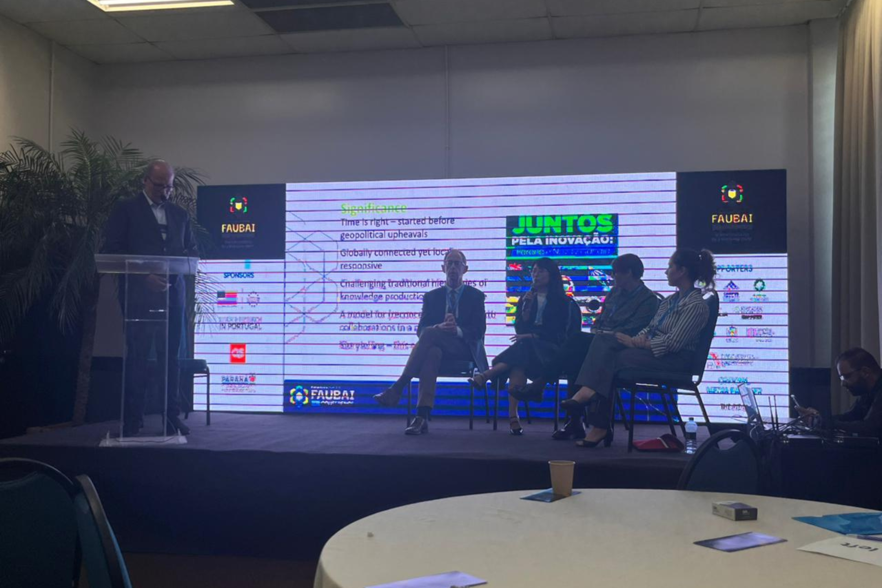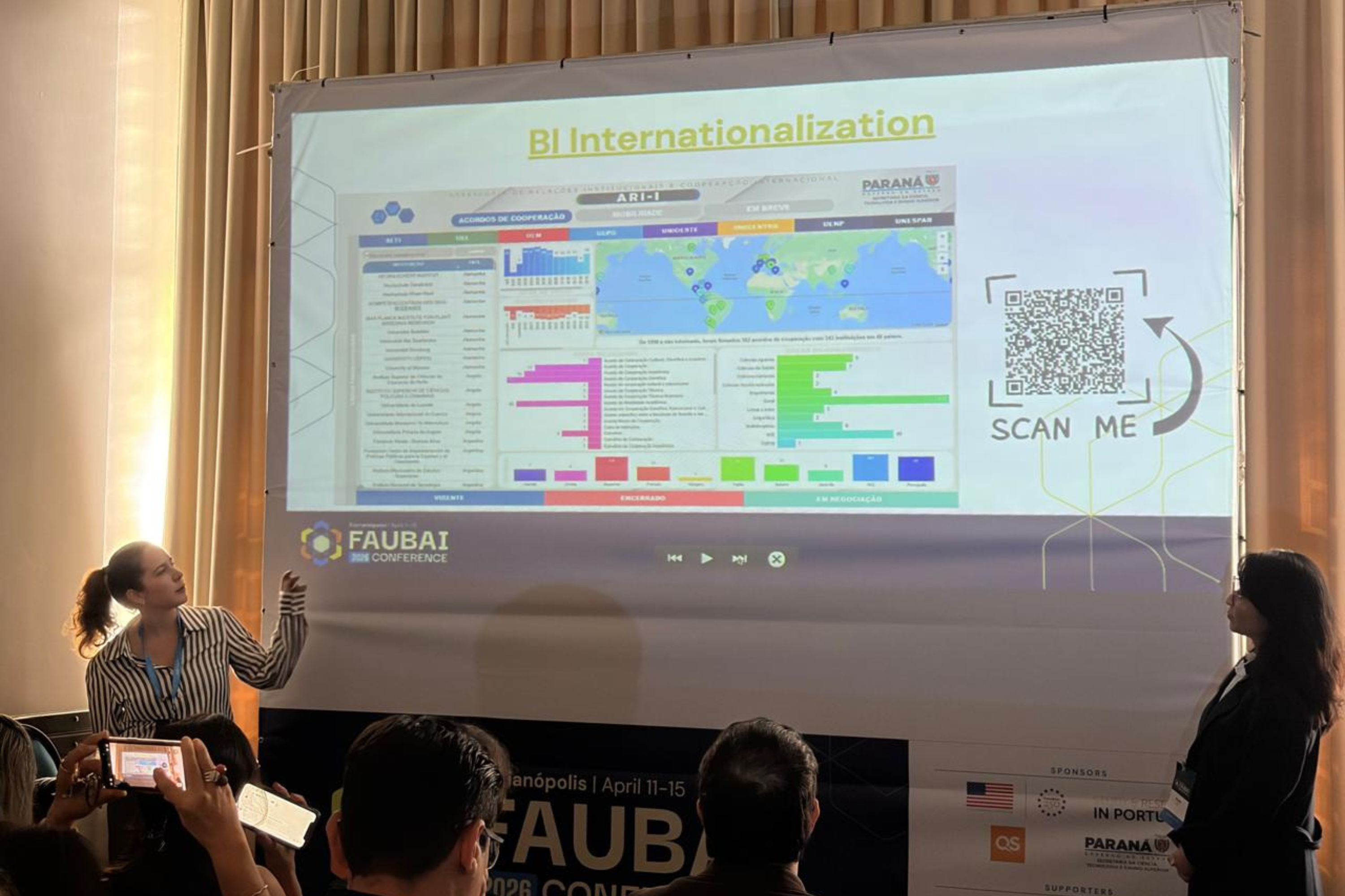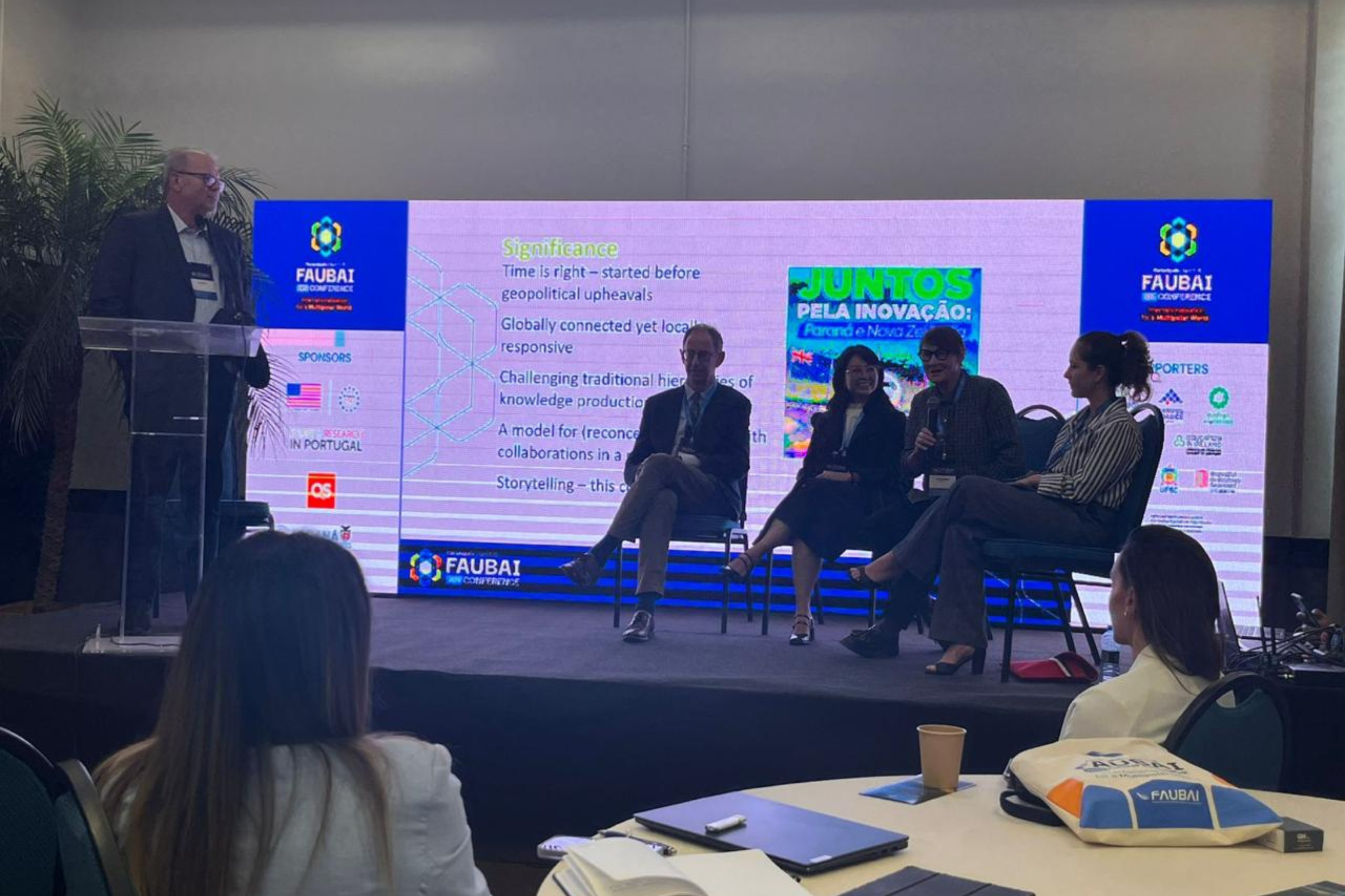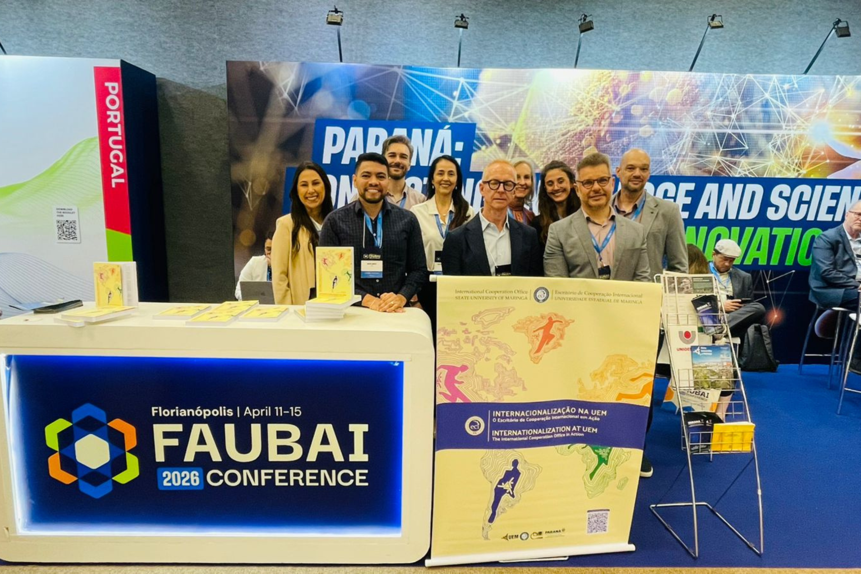 PROTAGONISMO PARANAENSE – Com uma comitiva de 20 pessoas, a rede de universidades estaduais do Paraná teve participação expressiva na Faubai 2026. Um grupo de representantes da Universidade Estadual de Maringá (UEM) integrou dois painéis do evento, apresentando ações de internacionalização e estratégias de formação docente para intercâmbios virtuais. Eles também participaram de debates sobre o protagonismo de países de língua portuguesa no cenário geopolítico atual.