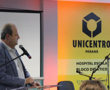 O Governo do Estado liberou um aporte de R$ 1,4 milhão para a implantação de um laboratório de espectrometria de massas de alta resolução na Universidade Estadual do Centro-Oeste (Unicentro). O recurso foi anunciado nesta sexta-feira (11) no Hospital Regional do Centro-Oeste (HRCO), em Guarapuava, na região Central do Estado, durante a cerimônia de início das atividades acadêmicas da instituição no bloco didático da unidade hospitalar.