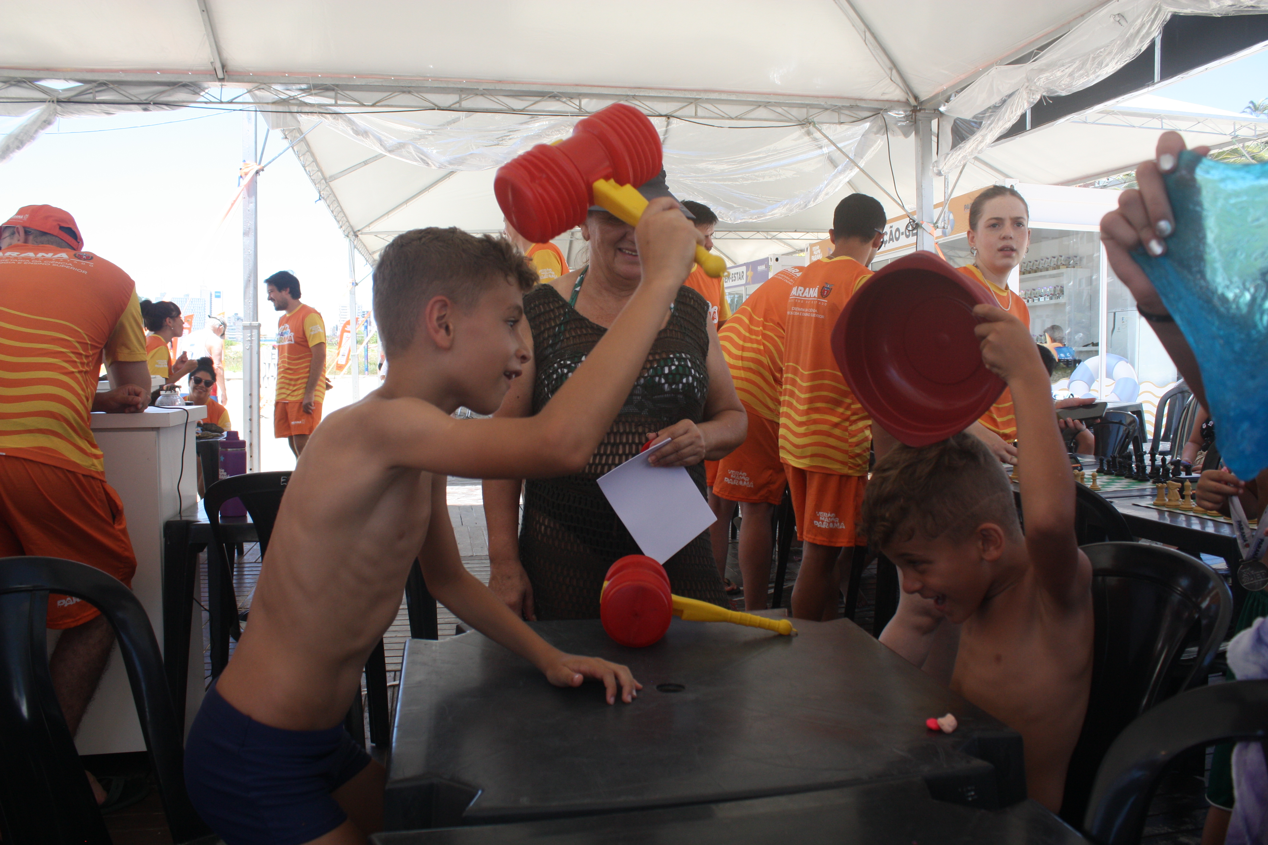 A mãe dela, Naiara Galvani, conta que elas vieram de Paiçandu, Noroeste do Estado, para passar a temporada e, que Lívia visitou o espaço da Seti na última semana, para conhecer os projetos. “Ela vinha pintar o rosto todos os dias. Quando choveu, ficou triste que não tinha nada na praia”.